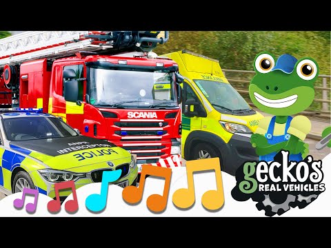 Emergency Vehicles Song|NEW Kids Music|Gecko's Real Vehicles|Police, Ambulance, Fire Truck For Kids By: Toddler Fun Learning |
