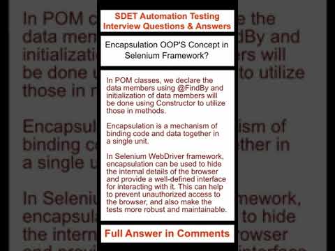 JAVA SELENIUM FRAMEWORK : Encapsulation OOP'S Concept in Selenium Framework? : SDET Automation Channel : SDET Automation Testing Interview Pro |