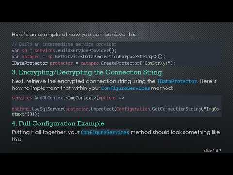 Securely Encrypting appsettings Connection String Using IDataProtectionProvider in ASP.NET Core 3.1 Channel : vlogize |