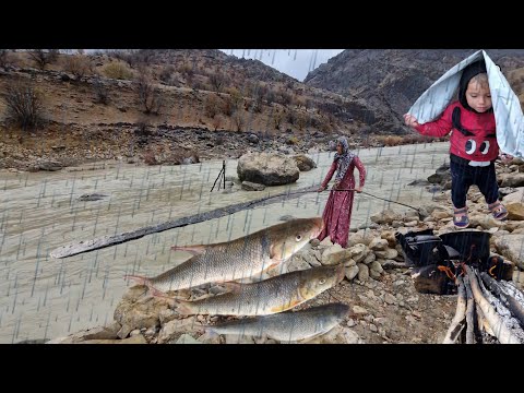 Nomadic Mother Fishing in Heavy Rain with Her Children | Survival in the Zagros Mountains Channel : balro |