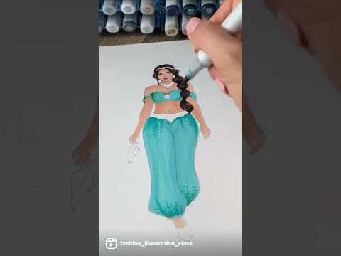 Breathtaking Princess Jasmine #FashionIllustration From Disney's Aladdin. Channel : Rongrong DeVoe Fashion Illustration |