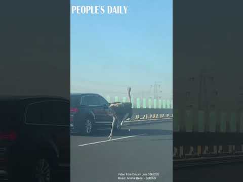 An ostrich was seen running on N China's Rongcheng-Wuhai expressway on Monday Channel : People's Daily, China 人民日报 |