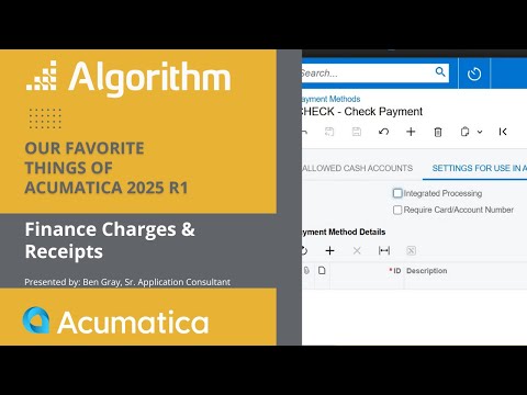 What's New in Acumatica: Finance Charges and Receipts by Ben Gray Channel : Algorithm Inc. ERP |