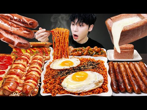 ASMR MUKBANG 직접 만든 대왕 소세지 불닭볶음면 핫도그 치즈스팸 먹방 & 레시피 FIRE NOODLES AND SAUSAGE EATING SOUND! Channel : SIO ASMR |