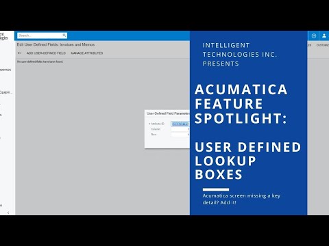 Acumatica Feature Spotlight: User Defined Lookup Boxes By: Intelligent Technologies Inc |