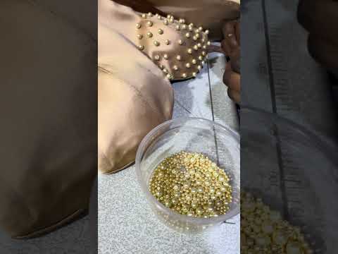 Adding beads to a dress design through hand beading By: Ambaa clothing |