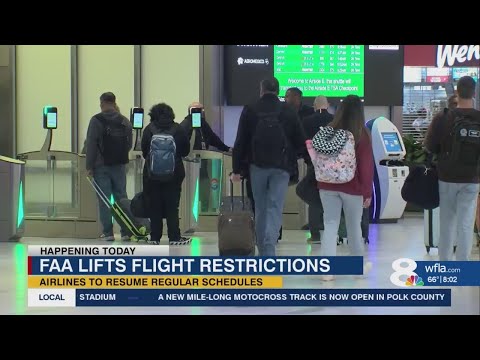 FAA lifts flight reductions, TPA among airports returning to normal By: WFLA News Channel 8 |