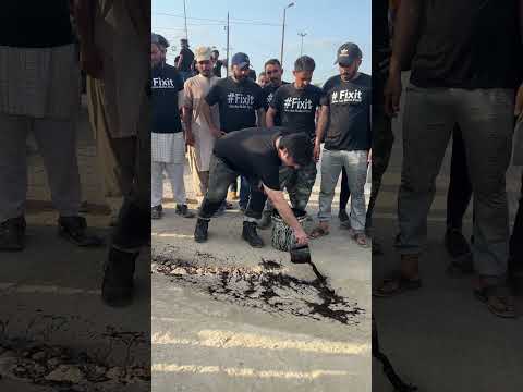 Alamgir Khan earlier today with #fixit Team during Road Repairing Activity Repaired Deadly Pothole By: Alamgir Khan - FIXIT |
