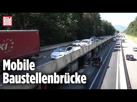 Oben wird gefahren, unten gebaut: Mobile Autobahnbrücke soll Staus verhindern By: FOCUS online |