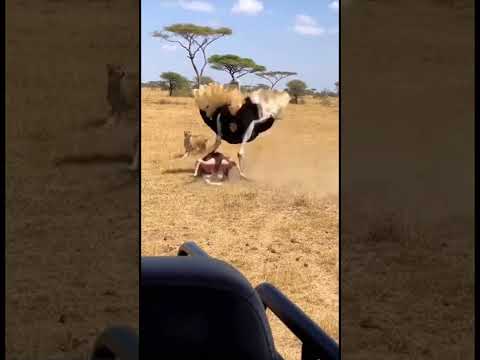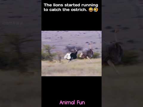 Seeing two lions, the ostrich started running fast. S 168 😅🤣 #animals #wildlife #shorts #shortsfeed By: Animal Fun |