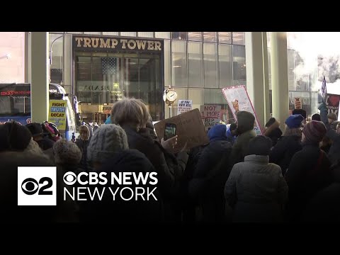 Protesters gather outside Trump Tower in NYC to mark 1st year of president's 2nd term By: CBS New York |
