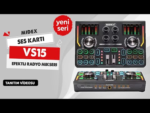 Midex VS15 Üst Seviye Stüdyo Kayıt Canlı Yayın Şarjlı Ses Kartı Efektli Radyo Mikseri By: Yonka Müzik Market A.Ş |