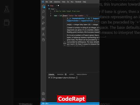 How to take input in python #shorts #python #pythonprogramming #python3 By: CodeRapt |