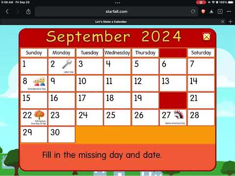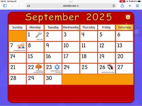 Starfall Calendar September 2018 By: PfamilyChannel |
