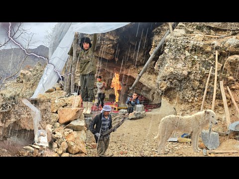 Cave Life in the Mountains: Heavy Rain and Storms ๐ง๏ธ | Nomads' Battle with Winter Cold โ๏ธ๐ฅ Channel : koh noor |