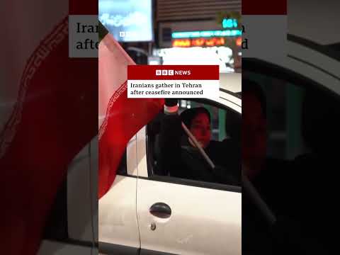 Iranians gather in Tehran following US-Iran ceasefire announcement. #Tehran #Iran #BBCNews Channel : BBC News |