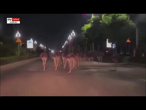 WATCH: Motorists shocked as 80 ostriches filmed running down a street Channel : Sky News Australia |