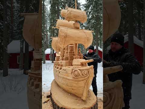 Epic Ship Carving Time-Lapse! 🪵🚢 #winterart #diy #woodworking #shorts Channel : Chubby Paws TV |
