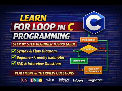 For Loop in C Programming Explained Step by Step for Beginners | C Language Tutorial for Placements Channel : Info Techiezz |
