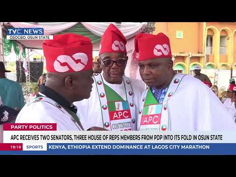 APC Receives Two Senators, Three House Of Reps Members From PDP Into Its Fold In Osun State By: TVC News Nigeria |