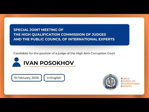 19.02.2026 Special joint meeting Posokhov Ivan Serhiiovych (in English) By: Вища кваліфікаційна комісія суддів України |