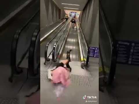 Girl Fall while walking Off Airport Escalator #shorts By: Amazing Viral Video |