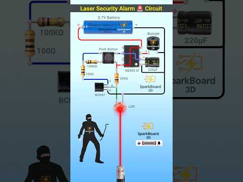 Laser security alarm 🚨 circuit | Anti theft alarm | Burglar alarm #diyproject By: SparkBoard 3D |