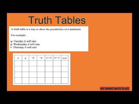 Truth Tables - Intro and Basic Negation Conjunction Disjunction Setups By: Professor Bennett's Math Channel |