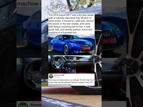 The 2016 Lexus GS F was a full-size sedan with a naturally aspirated 5.0L V8 and no turbo tricks By: G82 Nick |