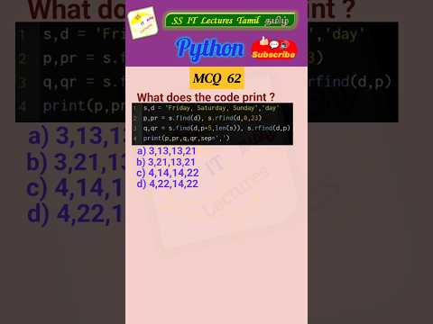 Python MCQ 62 - Test Your Skills #python #pythonprogramming #pythoninterview#shorts#trending By: SS IT Lectures Tamil தமிழ் |