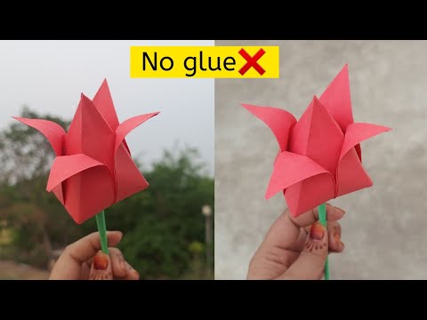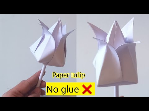 How to make paper tulip|Easy origami tulip|DIY tulip flower|No glue paper craft By: The Easy Art |