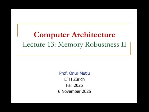Comp. Arch. - Lecture 13: Memory Robustness II (Fall 2025) By: Onur Mutlu Lectures |
