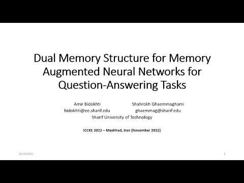 ICCKE 2022 - Dual Memory Structure for Memory Augmented Neural Networks for Question-Answering Tasks By: ICCKE |