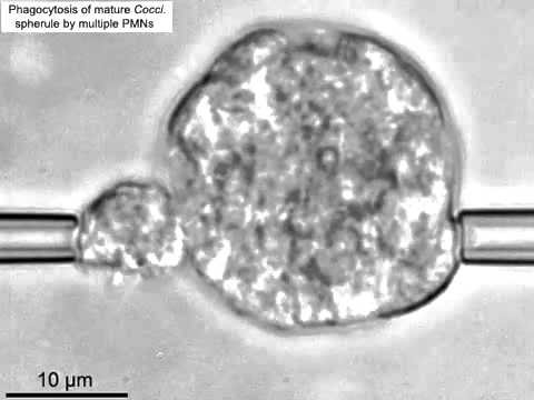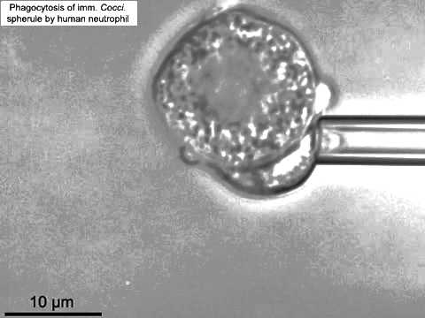 Frustrated phagocytosis of an immature C. posadasii spherule by a human neutrophil. By: PLOS Media |