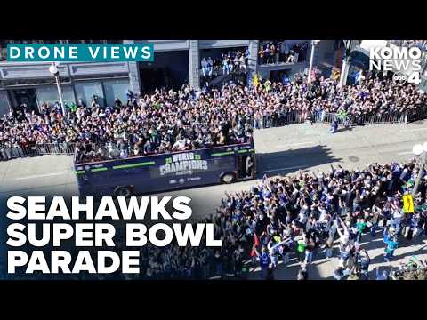 DRONE VIDEO: One million Seahawks fans celebrate Super Bowl LX win with team in downtown Seattle By: KOMO News |