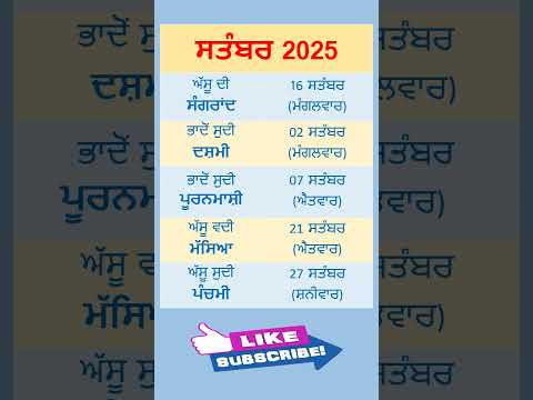 September 2025 | Masya September 2025 | Punjabi Calendar #calendar #punjabijantri By: Punjabi Calendar by Sukhminder Singh |