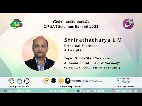 #SeleniumSummit21​- "Quick Start Selenium Automation with C# (Lab Session)" by Shrinathacharya L M By: Agile Testing Alliance |
