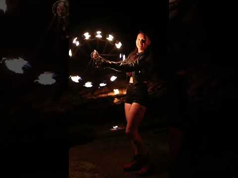 Spinning fire poi fire fans in the Maldives
