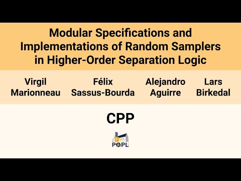 [CPP'26] Modular Specifications and Implementations of Random Samplers in Higher-Order Separation(…) By: ACM SIGPLAN |