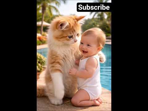 cute baby and a cat, #ytshorts #cat #catshorts #animals #cute #adorable #catlovers #ai By: Learn & Laugh AI |